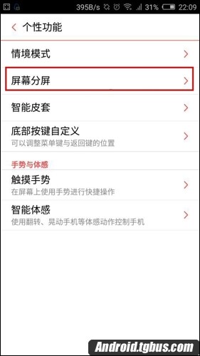 3、接下來在個性功能下方找到[屏幕分屏],點擊進入,如下圖所示。