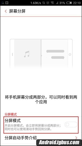4、進入之後在其頁面,找到並點擊開啟【分屏模式】開關,如下圖所示。
