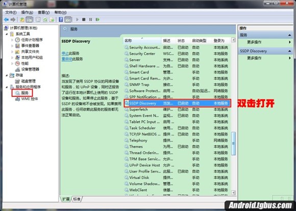 一:WIN 7系統,桌面--計算機--右鍵---管理--服務和應用程序--服務。