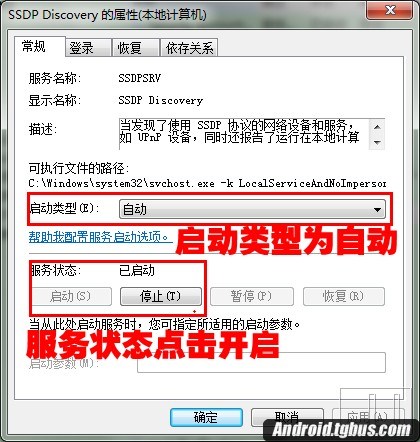 PS:如果選擇媒體流選項無法啟動媒體流,請繼續桌面--計算機--右鍵---管理--服務和應用程序--服務“Windows media player network sharing service”--雙擊此服務--彈出對話--常規--啟動類型--自動--確定即可。