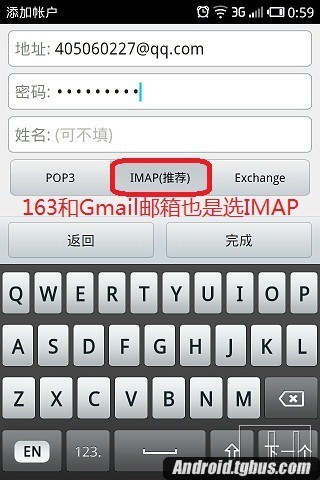 電腦端設置好以後,進入手機郵箱。輸入郵箱地址和密碼之後,系統會默認選擇IMAP,直接點完成就可以了