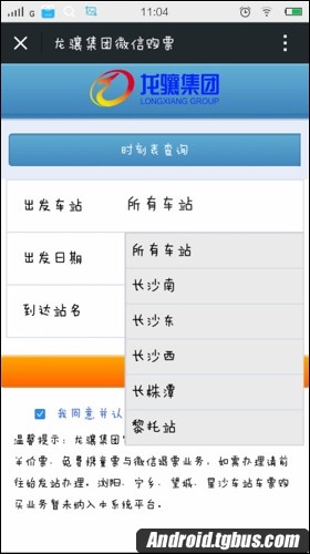 2、然後在“龍骧集團微信購票”購票界面,選擇一個起始站,如下圖所示。