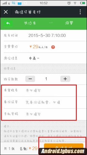 6、進入支付頁面後大家填好你的真實姓名、身份證號、手機號碼點擊“微信支付”,如下圖所示。