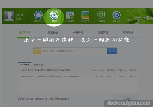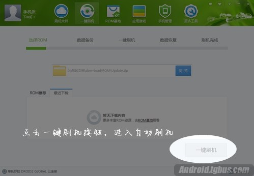 2、點擊一鍵刷機按鈕,進入一鍵刷機的功能界面