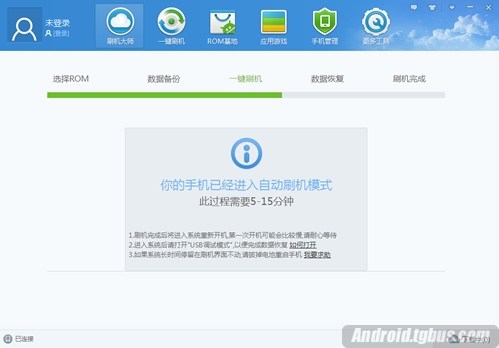4、點擊【一鍵刷機】按鈕,進入自動刷機的流程,刷機大師將為您帶來全自動的刷機體驗!