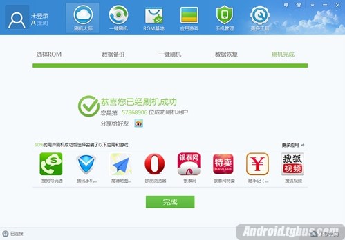 6、完成上面的步驟後,手機會重啟,然後進入自動刷機模式,自動刷機還會經過一段時間,我們再耐心等待刷機完成!