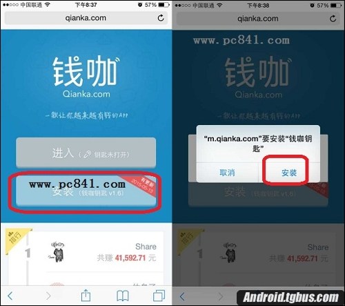 2、首進入網頁按照提示安裝“錢咖鑰匙”app,如圖: