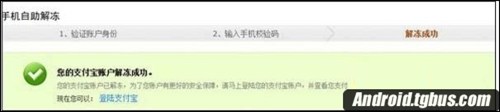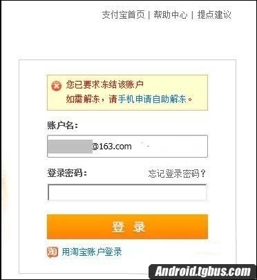 2、系統提示“您已要求凍結該賬戶,如需解凍,請手機申請自助解凍”,如果您在主動凍結時留下了您有效的手機號碼,您可點擊【手機申請自助解凍】。
