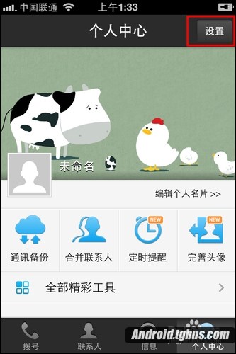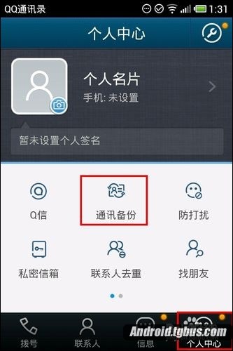3、進入QQ通訊的“個人中心”,在操作菜單裡選擇“通訊備份”。