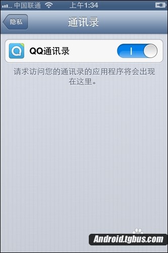 7、然後就是打開iphone手機,線進入“設置”,在“隱私”中,打開QQ通訊錄。沒有打開這個授權,也不能正常使用QQ通訊錄。