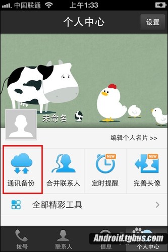 4、然後進入通訊備份的菜單,選擇“備份通訊錄”。
