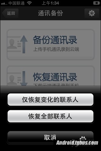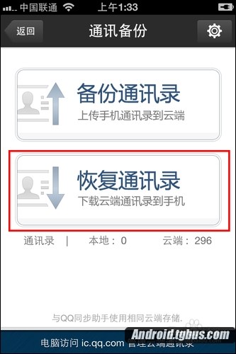10、然後進入通訊備份的菜單頁面,然後選擇“恢復通訊錄”。