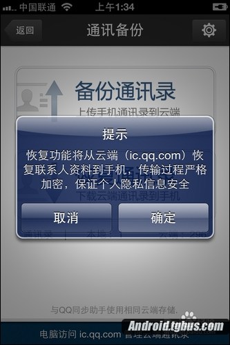 11、然後就會進入備份恢復,顯示選擇是否備份頭像和變動的聯系人。