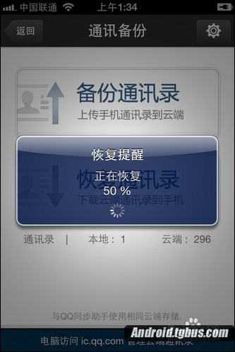 6、然後就進入通訊錄備份到雲端,會提示進度和通訊錄個數。這樣就備份成功了,包括通訊錄和頭像。
