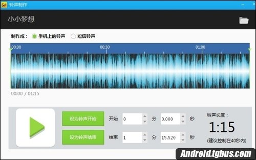 4、定制個性鈴聲的起始和結束的位置——制作好設置為鈴聲。