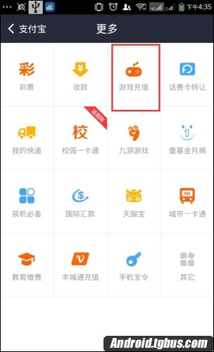 2、選擇【游戲充值】。