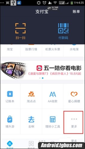 1、打開支付寶,在支付寶手機客戶端的主頁面下拉,點擊【更多】。