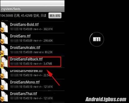 3、打開RE資源管理器應用軟件,進入到fonts文件夾,將DroidSansFallback文件復制到SD卡中並進行重命名備份;將“華康少女.ttf“字體文件復制到SD卡並更名為”DroidSansFallback.ttf“,最後用RE管理器替換手機中DroidSansFallback文件,最後重啟即可實現字體更換,如下圖所示。