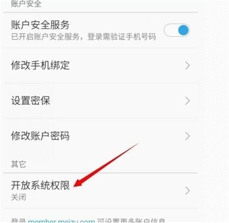3:進入賬號設置頁面裡,點擊最下方的【開放系統權限】