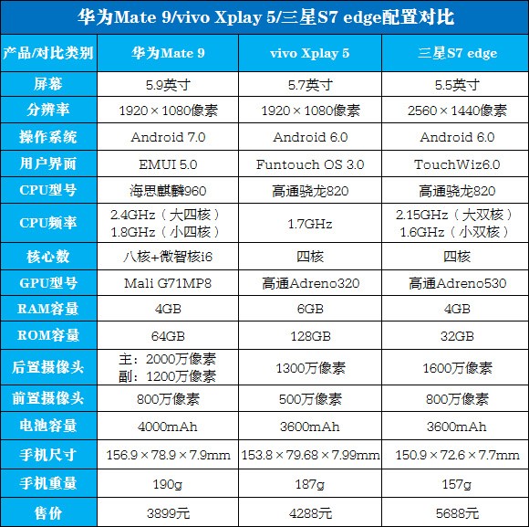 今天,小編就目前三款比較受歡迎的產品(華為Mate 9、三星S7 edge、vivo Xplay 5)為大家對比一下。三款手機系統分別為華為Emoution UI、三星TouchWiz、vivo Funtouch OS。