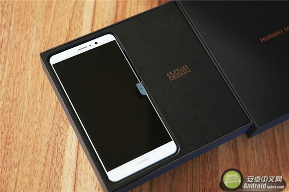 看過了包裝盒,我們一起看下包裝盒的內部。打開包裝盒,首先映入眼簾的就是這款“華為Mate 9",它整體上延續了Mate系列的設計語言,比較注重商務性,正面沒有多余的元素,熄屏情況下看起來非常美。