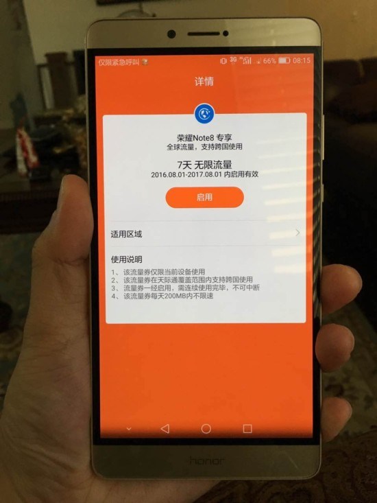 為了這幾天的上網和電話,同行的小伙伴在國內買了美國電話卡, 我的榮耀NOTE8直接開通7天的全球通用的天際通服務,而且是免費的。