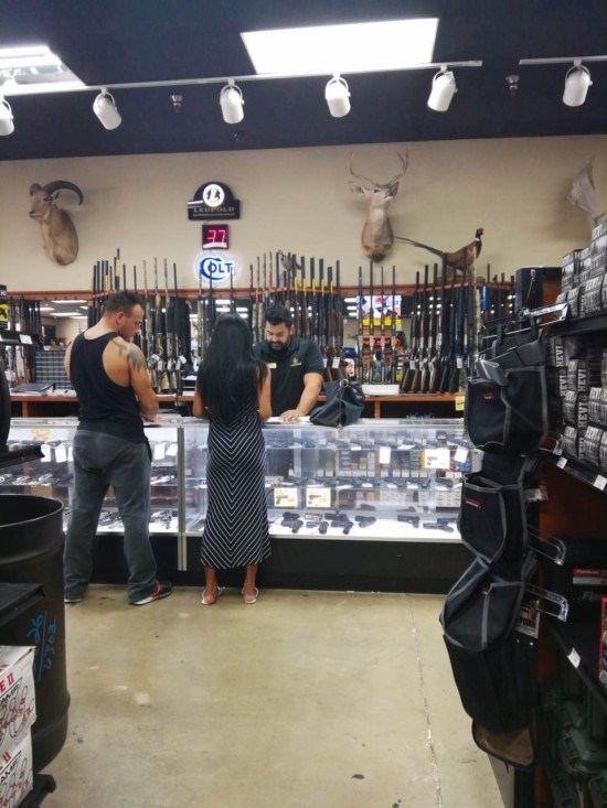有兩位顧客正在買Gun,哥們的紋身很不錯,在美國這樣的戶外用品店主要賣各種Gun,還有配件、改裝件,打獵的弓-弩、彈-弓、氣-狗,還賣漁具什麼的,價格都還蠻便宜,所以我們買了不少,嘿嘿嘿。