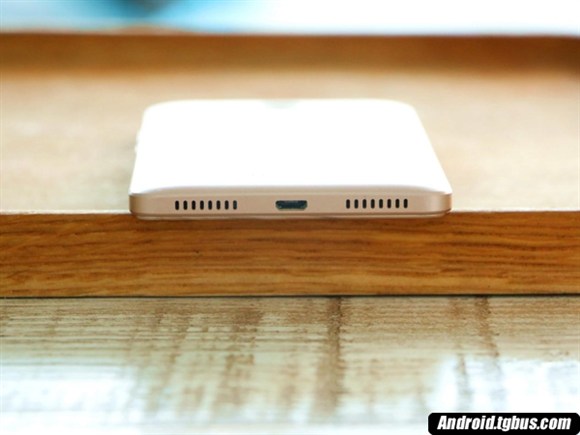 底部則是揚聲器+Micro USB接口的組合,值得一提的是這一次海信並沒有像上一代產品一樣把揚聲器設置在背部,而是歸於主流把揚聲器設置於底部。