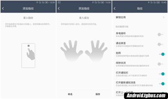 海信金盾手機采用的是背部按壓式指紋識別,支持全方位360°指紋識別,安全支付(包括第三方應用支付),指紋解鎖開啟屏幕快至0.5s內。還加入了上滑、左右滑指紋模塊觸發打開通知欄、最新通知信息等便捷操作功能。