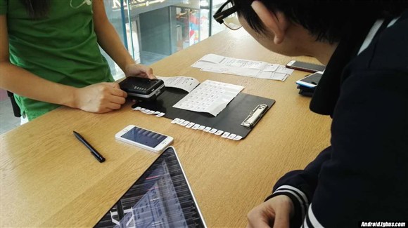 我們將手機交給愛回收工作人員後,愛回收工作人員如同用戶網上估價一樣,當場在電腦上輸入各項指標,返回報價(但由於某些指標,用戶判斷的指標與工作人員不一致,導致估價有出入)。用戶可以在頭頂的電腦屏幕上,看到自己手機的評估過程。