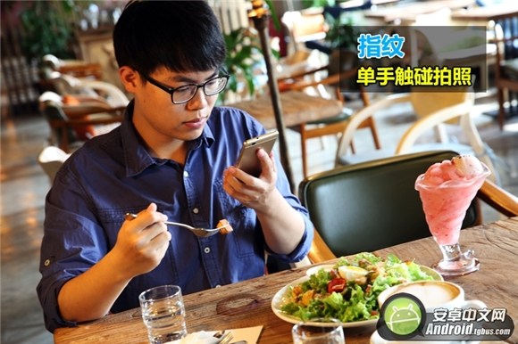 即使在吃飯時我們也能快速單手拍照,記錄下最美好的圖片。通過指紋碰觸拍照,我們單手握持根本不受拘束,不論是橫拿還是豎握,都能非常方便的觸摸機身背後的指紋識別模塊,從而進行快速拍照。