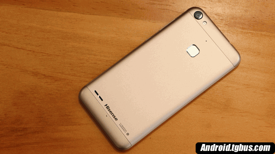 兩種材料的銜接處並沒有明顯的錯落感,再加上塑料材質經過金屬化處理,在觸覺和視覺上並沒有沒明顯的落差。而機身背面功能布局較為趨同,1300萬像素的後置攝像頭+指紋識別模塊,下方是logo和揚聲器。考慮到外放的音量,其下方飾條還特意做了一個凸出的小圓點(避免手機平放時會阻擋出聲孔)從這小小設計可以看出海信在用戶體驗上考慮十分周全。