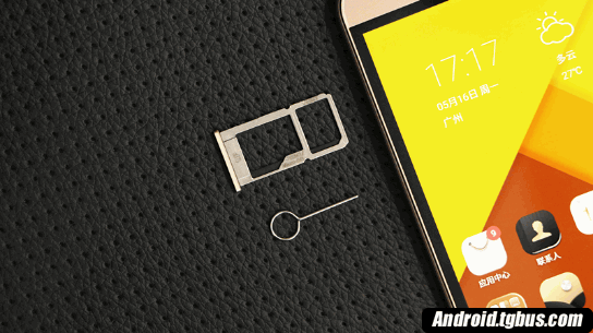 在物理按鍵上,音量鍵和開關鍵都設置在機身右側,同樣采用金屬材質,並且回饋力度適中,而在機身左側為sim卡槽,並且支持雙卡雙待。同時整機厚度控制在8mm以內,雖然離超薄機身有點遠,但配合機身背部的弧度設計,沒有硌手感並且在握持的舒適度上更佳。