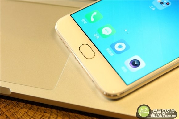 此次OPPO R9 Plus取消了之前的虛擬按鍵設計,采用了實體Home鍵設計,可以說,進入2016年以來,實體Home已經成為手機的一個時尚標志,此次OPPO R9 Plus的實體鍵的加入,也為手機的時尚增添一些氣息。而且,OPPO R9 Plus的指紋識別也被融入到此實體鍵上。屏幕上方則是帶有一個前置攝像頭、一個傳感器以及一個聽筒。