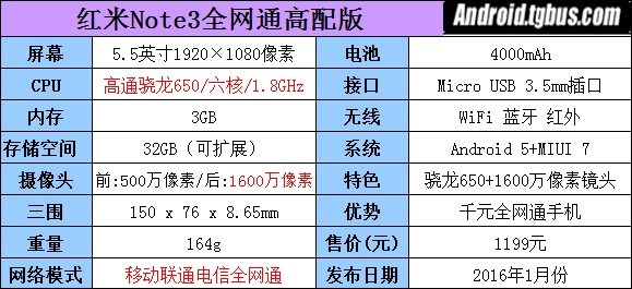 前幾日紫荊帶來了紅米Note 3雙網通版的評測,通過反響來看,紅米的熱度還是很高的。不過留心查看紅米官網的童鞋一定注意到了它的更新!對,在本月17日全網通版的紅米Note3就將與大家見面了。神通的我們終於提前拿到了這款手機,那麼兩款手機的區別僅在於網絡制式的不同嗎?答案當然是否定的。下面我們就一探究竟。