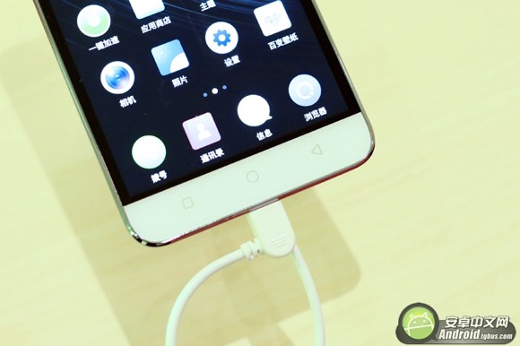 屏幕上方帶有一塊500萬像素前置攝像頭,同時帶有美顏功能。屏幕下方是三枚常規的Android按鍵。