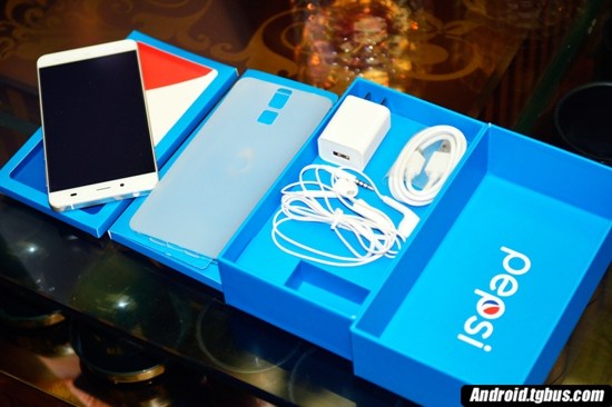 產品整個包裝體現了百事的主題元素——藍色。包裝除了標准手機主機一台、充電及USB連接線和耳機外,還有一個配套硅膠保護殼,磨砂質感,小編覺得手感不錯。