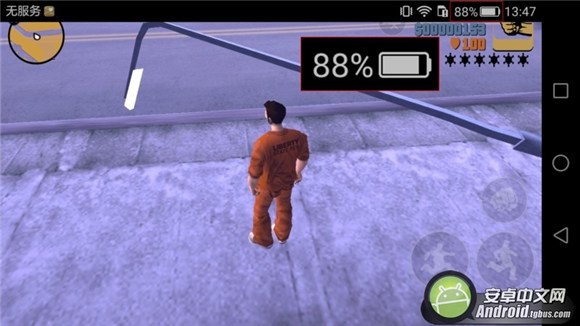 華為Mate 8《GTA 3》游戲試玩1小時候後電量剩余88%。