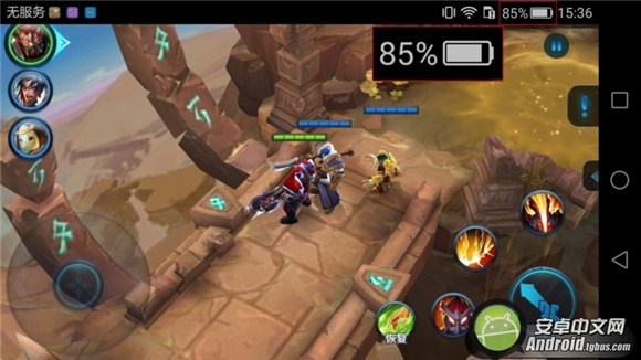 華為Mate 8《王者榮耀》游戲試玩1小時候後電量剩余85%。