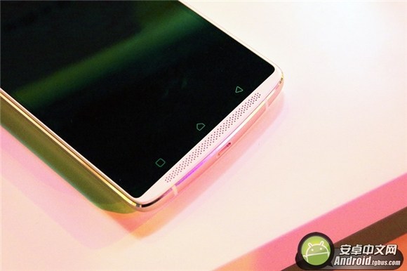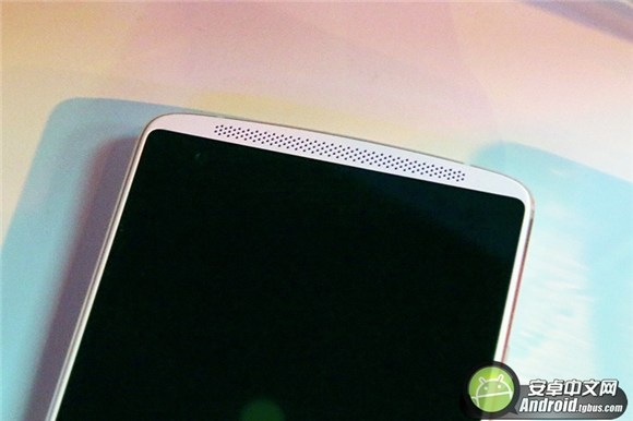 樂檬X3屏幕的上下兩端很有意思,密集圓形矩陣非常緊湊,而且據發布會信息得知,上端位置集成了294個正出音腔體設計,保證外放音質。前置800玩像素集成在黑色面板內。下方黑色面板則集成了返回、主頁、菜單三顆觸摸按鍵。整體感覺相當緊湊。