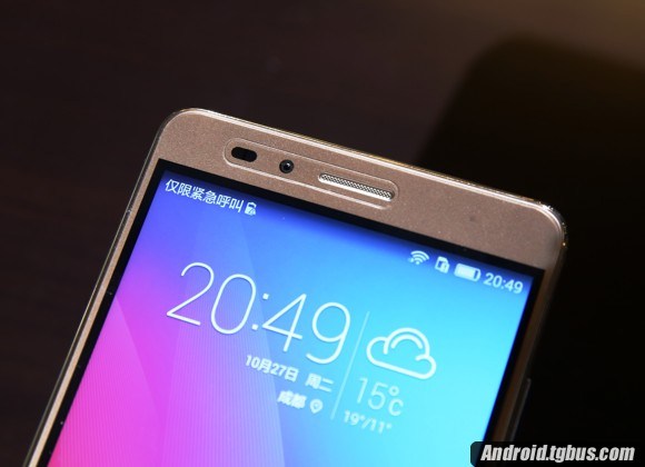 具有獨特設計的聽筒部分,看起來很有科技感,前置500萬像素攝像頭,回頭我叫美女拍一張大家看看!