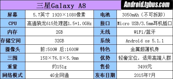三星Galaxy A8的配置參數,大家可以進行對比下。在配置上來說,無疑Moto X Style更加優秀,而價格方面,同樣是32GB ROM,Moto X Style售價3399元,三星Galaxy A8售價3499元。相信在性價比上來講,無疑Mo X Style更加優秀。