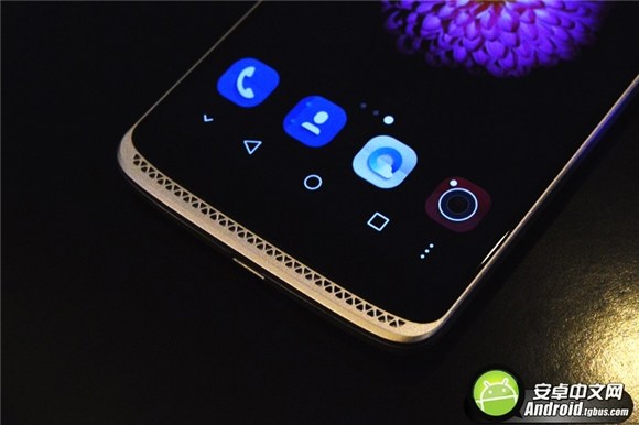 機身屏幕上端與下端均采用了AXON天機系列特有的三角形雲紋設計,旨在烘托出天機的尊貴與穩健之美。而我們關心的前置800萬像素攝像頭則集成在屏幕玻璃內部。