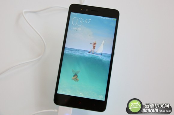 屏幕上方帶有一個通知燈、一個前置攝像頭以及一個距離傳感器,前置攝像頭采用了500W像素,支持自動美顏功能。