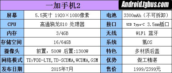 一加手機2采用了高通骁龍810處理器,並號稱為不發燒的810,標准版和高配也就在內存大小和存儲空間上有差異,不過整體看來這款雙卡雙待雙4G卻並不是全網通的手機,整體配備都算是不錯的。