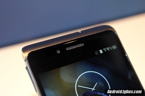 由於現場時工程機原因,所以它的邊框還沒打磨完全,拿在手機會感覺有些磨手,工作人員稱零售版肯定不會如此。機身上下兩部都采用了獨特的中款設計,在視覺感官上是非常不錯的。