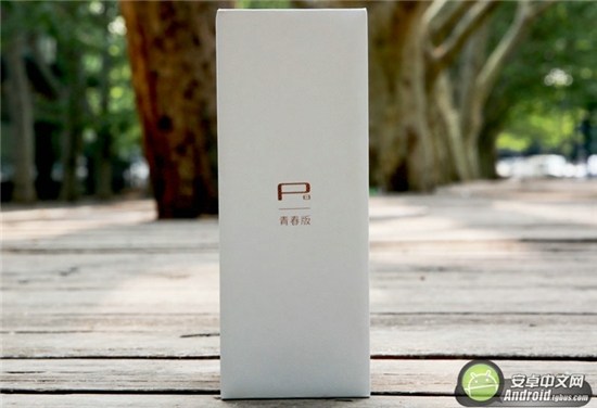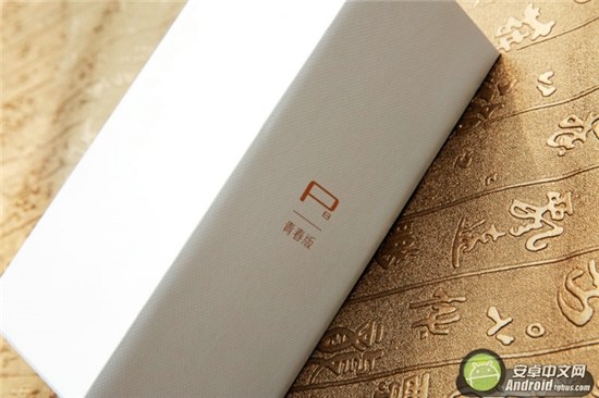 白色包裝頂蓋上印有P8青春版的金色LOGO。