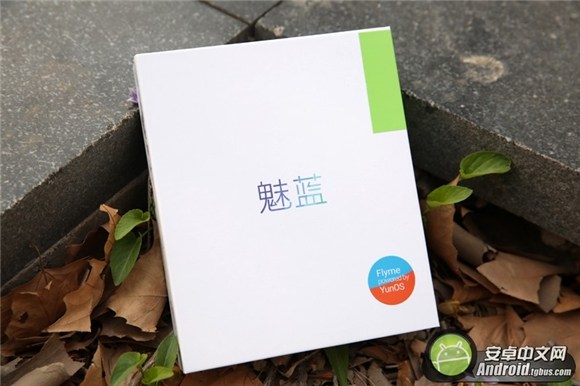 在包裝方面,它的大體設計與之前類似,在正面右下角標有Flyme powered by Yun OS的字樣,可以讓用戶分辨出它的系統,右上角也擁有機身顏色標志(本機為綠色機身)。