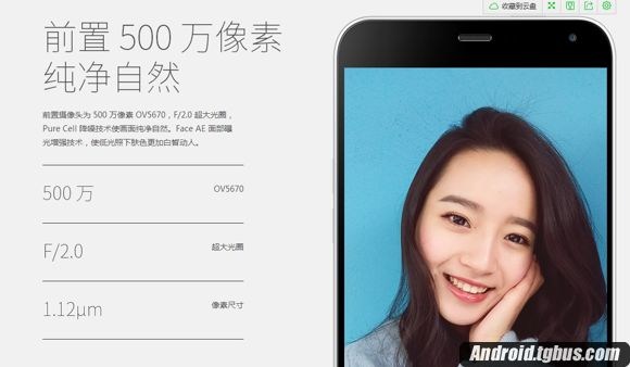 在發布會上白總特別介紹,該手機後置采用1300萬像素,前置也有500萬像素,而後置支持4倍數碼變焦,全景300°,F2.2超大光圈,並且支持一秒30張連拍功能。但是對於年輕人來說自拍是最頻繁的,所以魅藍采用500萬前置,4片鏡頭,支持F2.0超大光圈,比後置拍攝到面積更大,同時還有FotoNation 智能美顏功能。