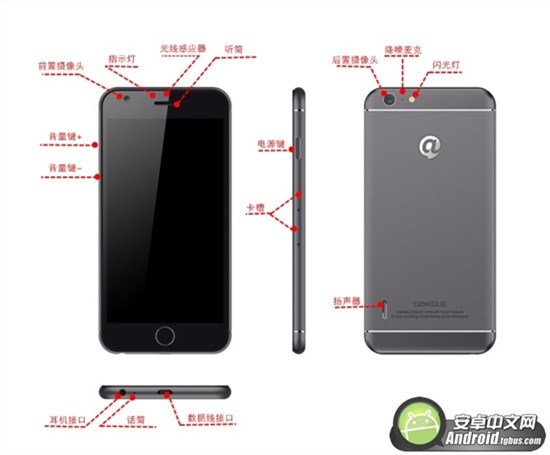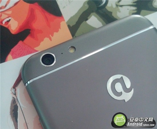 小編拿到這部大可樂3的工程機評測的時候,同事都很驚訝,問我這是哪個型號的iphone,這麼漂亮!大可樂3的前面板,實在太“iphone”了,連home鍵都一模一樣。不過背部有較大的改動,首先沒有了iphone白色的天線,並且把攝像頭與機身做平了。值得大贊的是圓弧側邊和機身背部連為一體,這對於背後一大塊金屬的制造工藝要求,是非常高的。三段式的設計,連接處是直接用金屬後蓋做切邊拋光,十分搶眼。